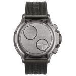 The 45mm steel case houses state-of-the-art electromechanics, enriched with chronograph functions, completely immersed in an oil bath. This technological solution not only ensures greater durability and precision over time but also lends an extraordinary aesthetic to the dial.