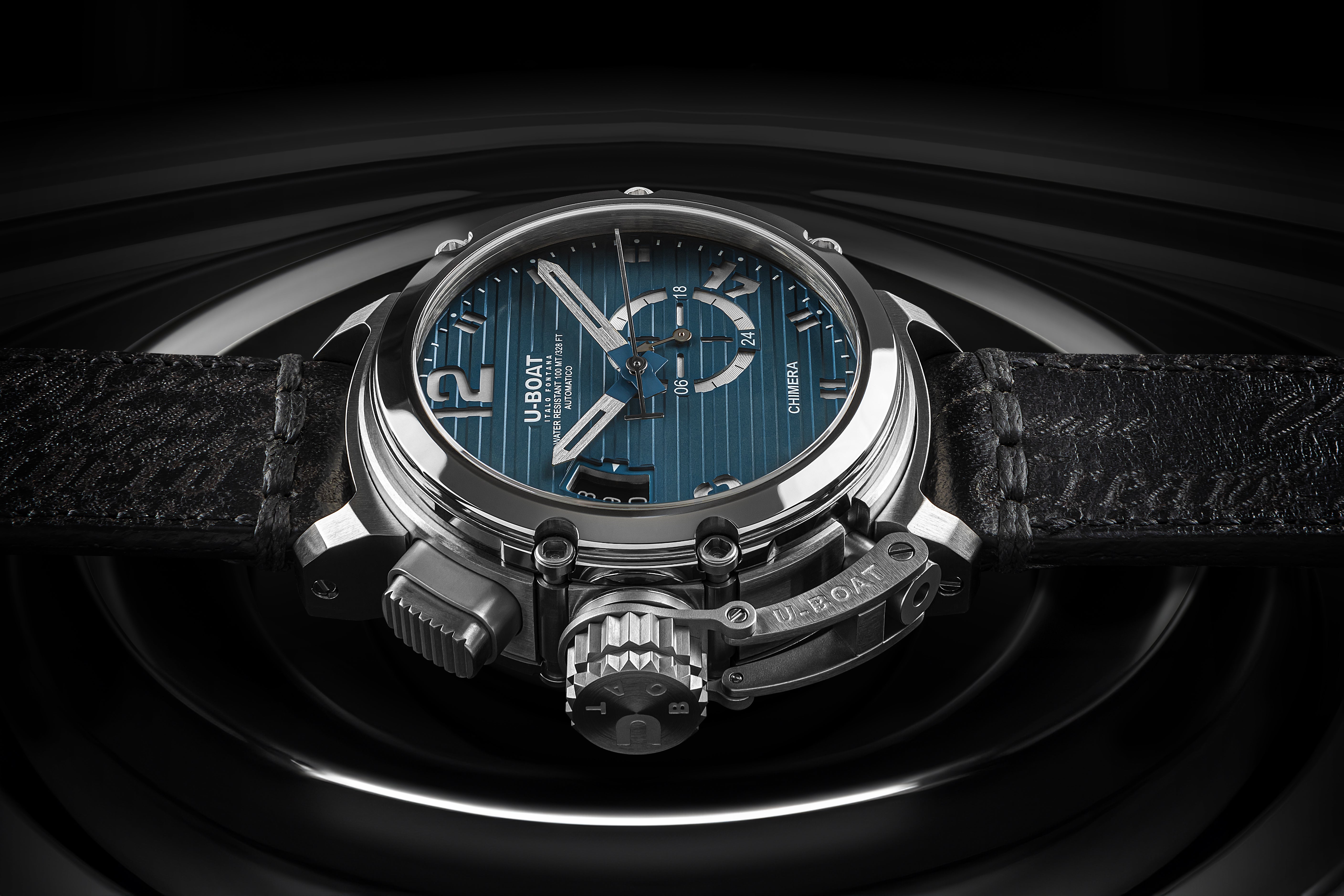 Parallel lines that delineate and shape the concept of time. The iconic Chimera model, in its time-only version, impresses with new geometries and three-dimensionality, through a new black blue with a striped pattern. Additionally, a patented crown release system makes adjusting the date and time extremely simple. Limited edition of 300 pieces.