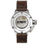 Swiss automatic winding with U-BOAT technical specifications. Frequency 28,800 vibrations / hour power reserve 41 hours. 26 rubies. Custom skeletonized rotor.
