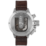 Sellita SW 500 mechanical automatic chronograph, with technical modifications to U-BOAT specifications. Frequency 28,800 vibrations/hour, 4 Hz. Power reserve 62 hours. 25 jewels. Skeletonized rotor.