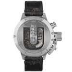 Sellita SW 500 mechanical automatic chronograph movement, with technical modifications to U-BOAT specifications. Frequency 28,800 vibrations/hour, 4 Hz. Power reserve 62 hours. 25 jewels. Skeletonized rotor.