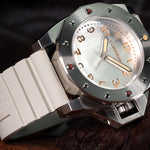 - Hands: Silver colour filled with High Quality Swiss Super-LumiNova® SLN Old Radium