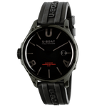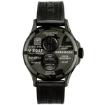 Made of AISI 316L steel with camouflage treatment, completely filled with a special oil that highlights the dial, creating the illusion of glass absence, with a deeper black effect and enhanced legibility. Visible air bubble on the dial to compensate for temperature variations. Distinctive crown protector on the left. 44,8 mm diameter.