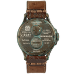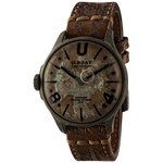 domed, painted metal with aged finish. Indexes and numbers treated with black superluminova. Hands painted metal with black superluminova.