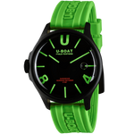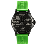 “Oil Immersion” concept in 44mm size. Wider 3D effect. Black PVD-treated steel case, black dial, and numerals, indexes and hands treated in green superluminova.