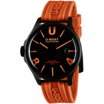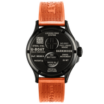 44mm size with a new domed dial, under the domed sapphire glass, further emphasizing the 3D effect. Electromechanical movement completely immersed in an oil bath. Black PVD-treated steel case, black dial and numerals, indexes and hands treated in orange superluminova.