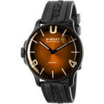 A collection inspired by the dark side of the moon. The PVD case is completely filled with a special oil that emphasizes the dial, made in brown metal with soleil finishing, creating an optical effect of a more intense color and higher legibility. Innovative locking system (Locking Ring System) with quick battery replacement.