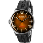 A collection inspired by the dark side of the moon. The case is completely filled with a special oil that emphasizes the dial, made in brown metal with soleil finishing, creating an optical effect of a more intense color and higher legibility. Innovative locking system (Locking ring system) with quick battery replacement.