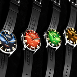 A collection inspired by the dark side of the moon. The case is completely filled with a special oil that emphasizes the dial, creating an optical effect of an higher legibility. Innovative locking system (Locking Ring System) with quick battery replacement.