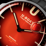 Red metal with brushed soleil finishing, hands and indexes treated with beige superluminova.