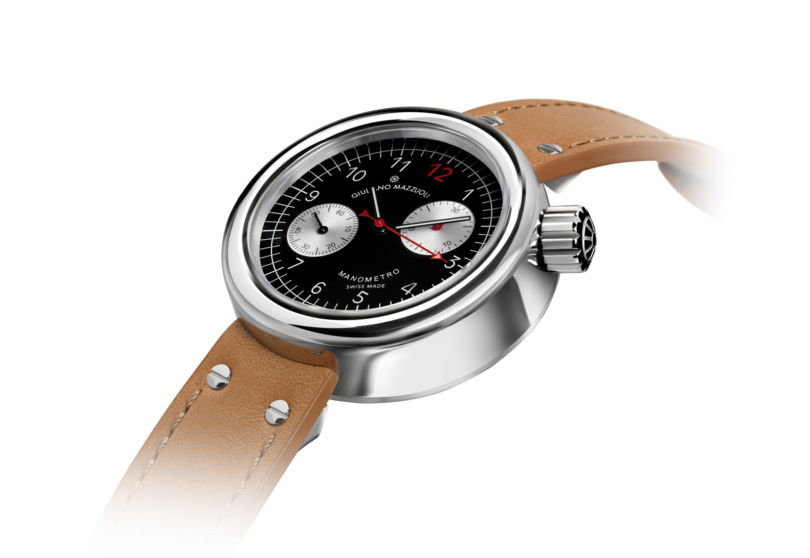 Designed and handcrafted in Italy with a Swiss movement and complication, the chronograph version of Manometro is faithful to the form and design of the original Manometro.