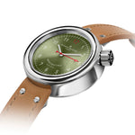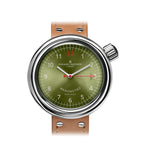 The watch is designed in Italy by Giuliano Mazzuoli and produced in Switzerland with a high precision Swiss movement. It is constructed using only the finest materials by master watchmakers. Combining the best Swiss technology with Italian design, the watch is unique in its simplicity and essential style. Beyond its creative design elements, the watch’s technical characteristics include a precision Swiss automatic movement and the case is made of stainless steel INOX AISI 316/L in either brushed or polished finishes. The color of the dial is moss green, and it is covered with a convex sapphire glass. The watch’s leather strap is made in Tuscany of natural calf-skin and it has a stainless steel buckle with the Mazzuoli logo inscribed on it.