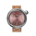 The watch is designed in Italy by Giuliano Mazzuoli and produced in Switzerland with a high precision Swiss movement. It is constructed using only the finest materials by master watchmakers. Combining the best Swiss technology with Italian design, the watch is unique in its simplicity and essential style. Beyond its creative design elements, the watch’s technical characteristics include a precision Swiss automatic movement and the case is made of stainless steel INOX AISI 316/L in either brushed or polished finishes. The color of the dial is rose mother of pearl, and it is covered with a convex sapphire glass. The watch’s leather strap is made in Tuscany of natural calf-skin and it has a stainless steel buckle with the Mazzuoli logo inscribed on it.