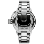 Sellita SW 200 swiss automatic mechanical, personalized to U-BOAT specifications. Frequency: 28,800 vibrations per hour, 4 Hz. Power reserve: 41 hours. 26 jewels. Skeletonized rotor.